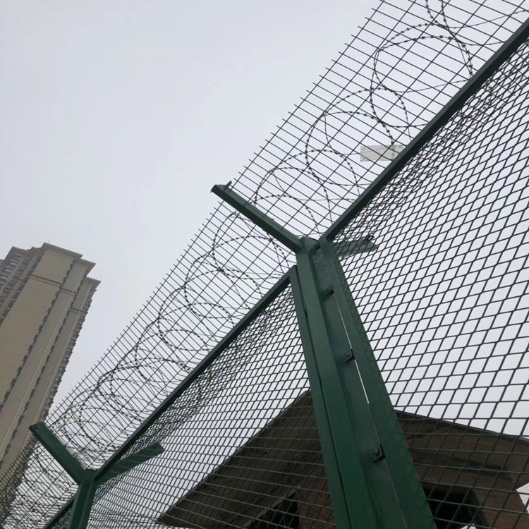 監(jiān)獄護(hù)欄網(wǎng)常見(jiàn)的一種是鋼板網(wǎng)式監(jiān)獄護(hù)欄網(wǎng),鋼板網(wǎng)式一張整板整體沖壓后制作成網(wǎng)片,然后焊接上邊框立柱,上邊架上刀片刺繩組合而成。監(jiān)獄鋼板網(wǎng)護(hù)欄網(wǎng)相比較于普通焊接網(wǎng)片監(jiān)獄護(hù)欄網(wǎng),鋼板網(wǎng)的抗裁剪,不開(kāi)焊,美觀等特點(diǎn)尤為突出。