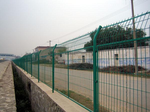 (四)雙圈防護網結構:用冷拔低碳鋼絲焊接成網筒狀卷邊與網面一體,用連接附件與鋼管支柱固定。特點:強度高、鋼性好、造型美觀、視野寬廣,安裝簡便,感覺明亮、輕松。(五) 機場專用防護網:本產品是專為機場設計的新型圍界產品,采用高強度低碳鋼絲強力焊接,立柱為矩形鋼及高強度圓管,頂部加焊V型支架,大大增強了圍網的抗沖擊力,頂部在增加刀片刺絲后又很好的增強了安全防護性能,國內外大型機場已廣泛采用此種產品,并得到了極大的認可。