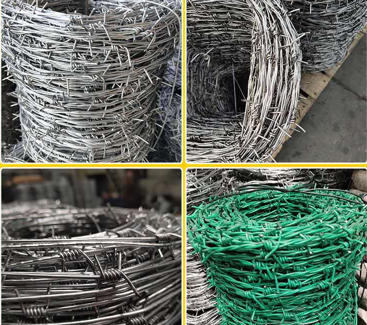 防爬刺絲剌網(wǎng)產(chǎn)品顏色:鍍鋅刺繩呈光亮銀白色,噴塑刺繩有藍綠,黃等顏色