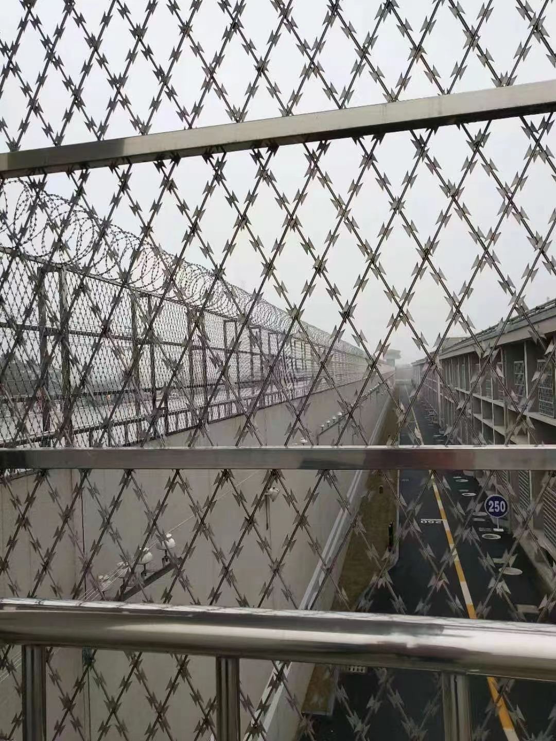 監(jiān)獄帶刺Y型柱防護(hù)網(wǎng)又稱監(jiān)獄護(hù)欄網(wǎng)或監(jiān)獄隔離柵監(jiān)獄防護(hù)網(wǎng)的防護(hù)等級(jí)比較高,一般要頂部帶 蛇腹型刀刺網(wǎng)來進(jìn)行加強(qiáng)防護(hù)。在監(jiān)獄防護(hù)網(wǎng)的立柱頂部做V型造型,然后在v型中架設(shè)蛇腹型刀刺網(wǎng)。這樣監(jiān)獄防護(hù)網(wǎng)的立柱就形成了一個(gè)型,由此作為一個(gè)立柱既可以安裝防護(hù)網(wǎng)網(wǎng)片又可以安裝蛇腹型刀刺網(wǎng),一柱兩用。