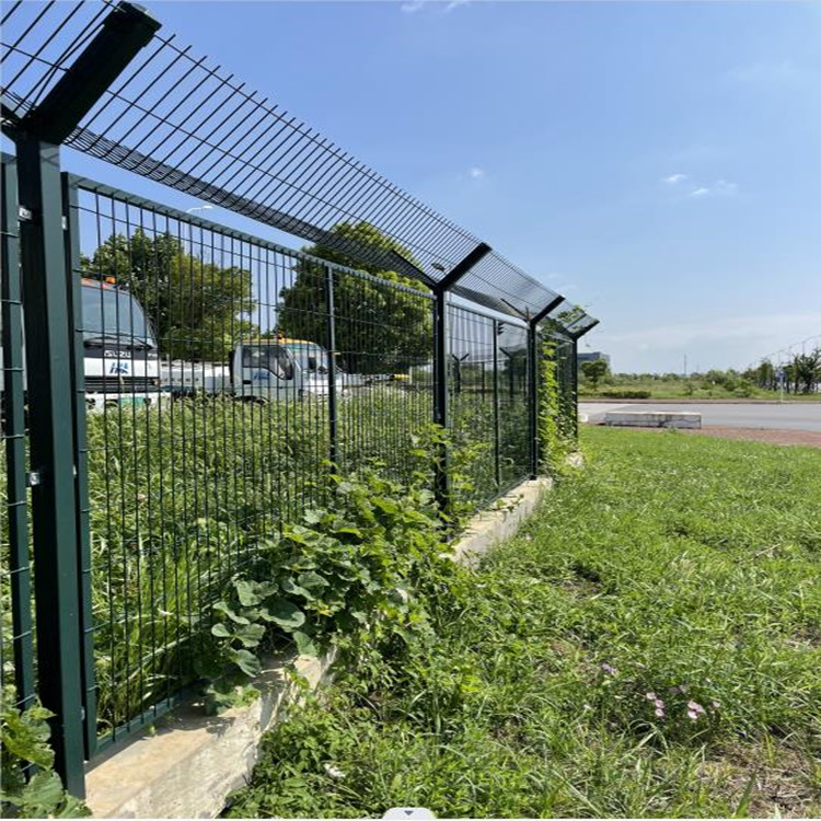 3、防護性能強。機場護欄網被稱為安全防御護欄網, 最大的特點也就是其防御性能高了。Y型安全防御護網尤其是在上端,設計的非常巧妙,一來上端的網絲是帶有小鐵刺的,可以有效的防止攀爬。另外上端,是V型的支撐一個網圈 ,具有一定的立體空間,從而更加上加大了攀爬通過的難度,是其防御性能非常的高。