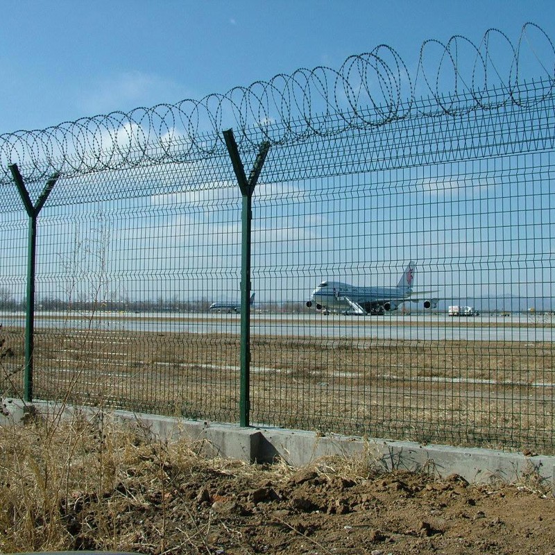 機(jī)場圍界Y型立柱安裝V型圍網(wǎng)加裝蛇腹型刀刺滾籠,會(huì)在機(jī)場外圍形成難以逾越的屏障,保障了機(jī)場各機(jī)組人員的安全。鋼筋網(wǎng)圍界安裝簡便,施工簡單,高阻隔,防攀爬成為機(jī)場飛行區(qū)圍界的必備之選。