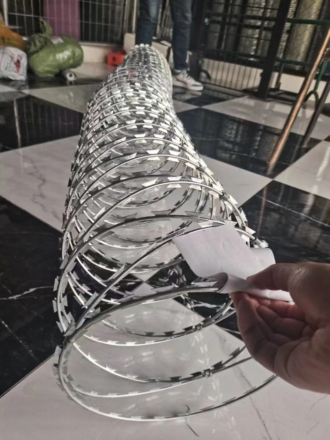 最后在拉開刺絲滾籠并固定的過程中最好一節(jié)一節(jié)的安裝 ,不要一次性全部拉開 ,否則容易回彈造成對另一端人員的受傷。固定時一定要固定牢固,因為刺絲滾籠有彈性,以免崩開劃傷安裝人員。